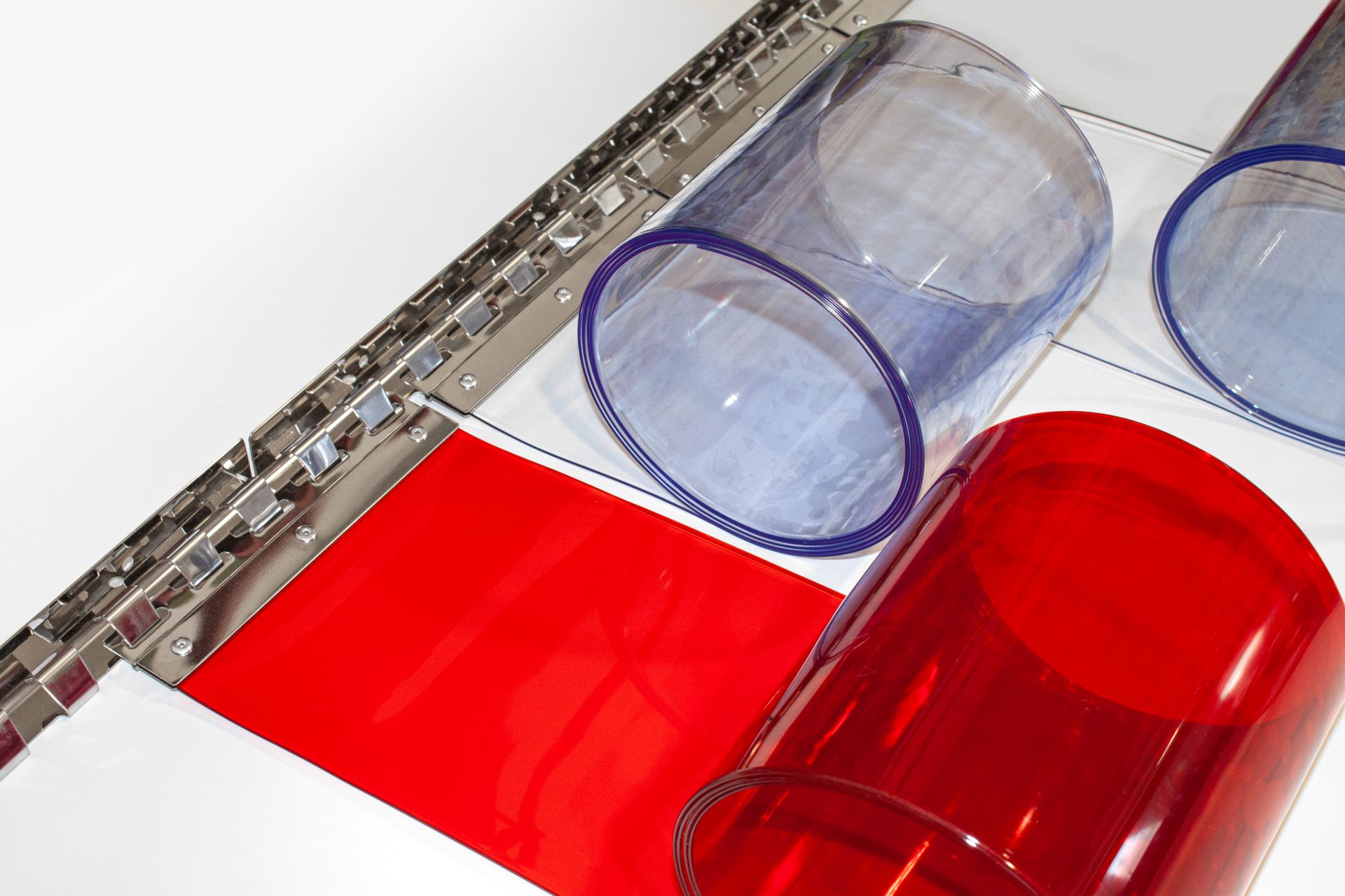 - Foil PVC strip curtains 3x300x4200 mm with holders and supports for mounting